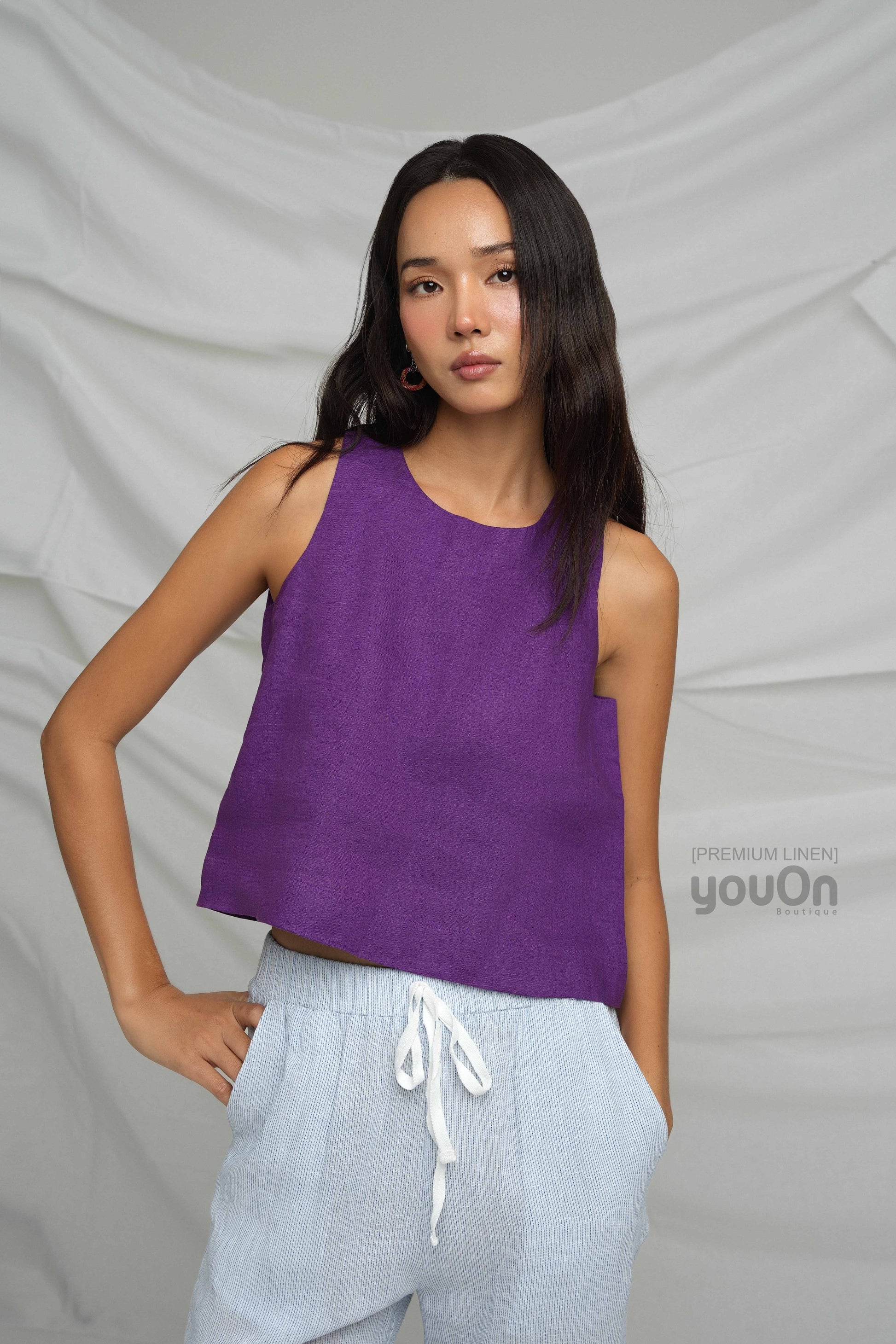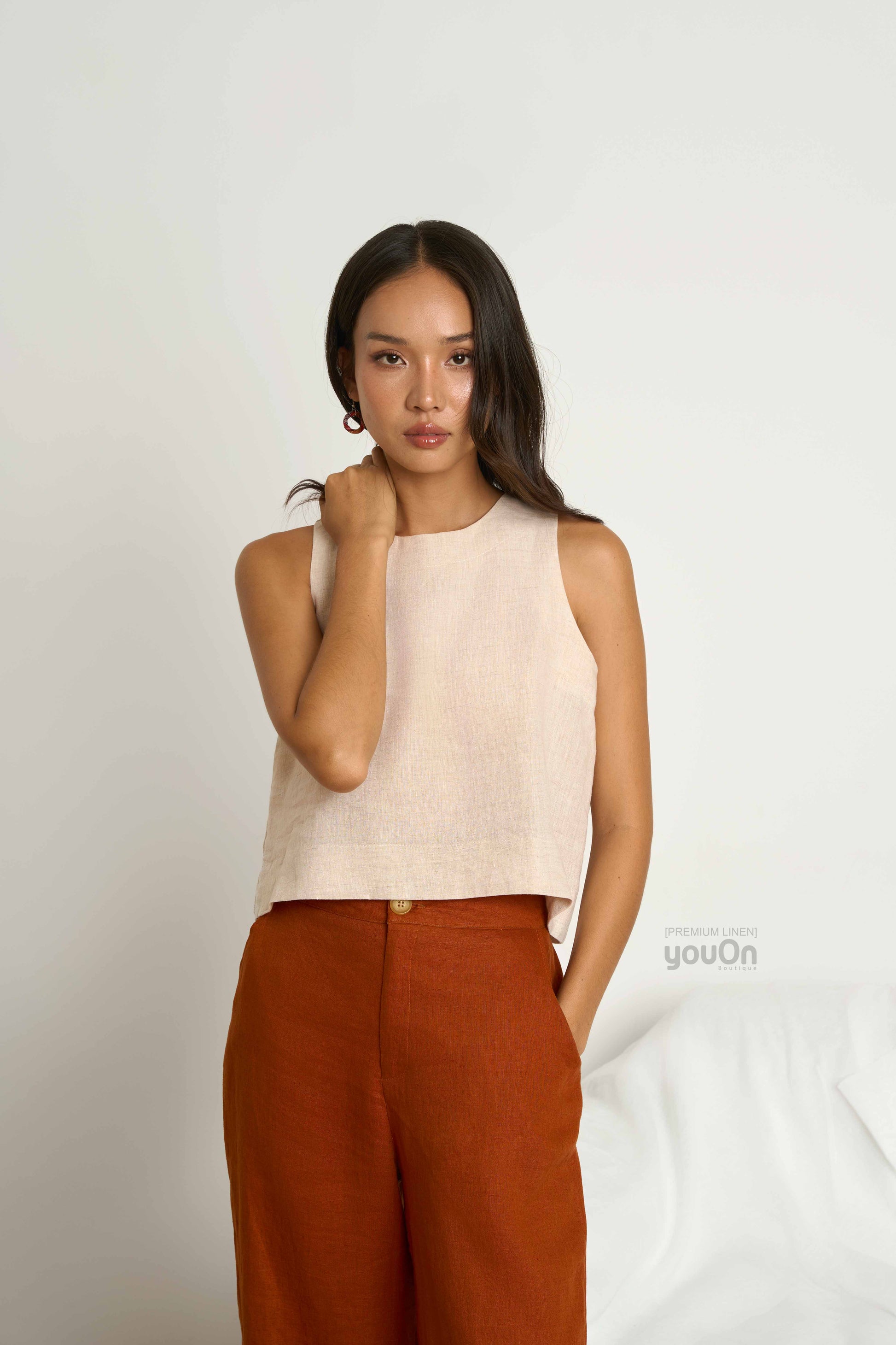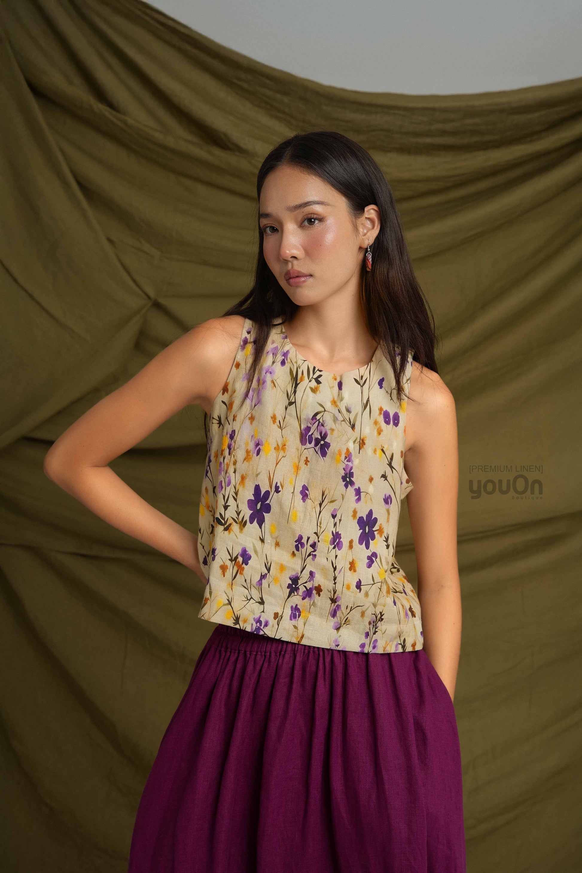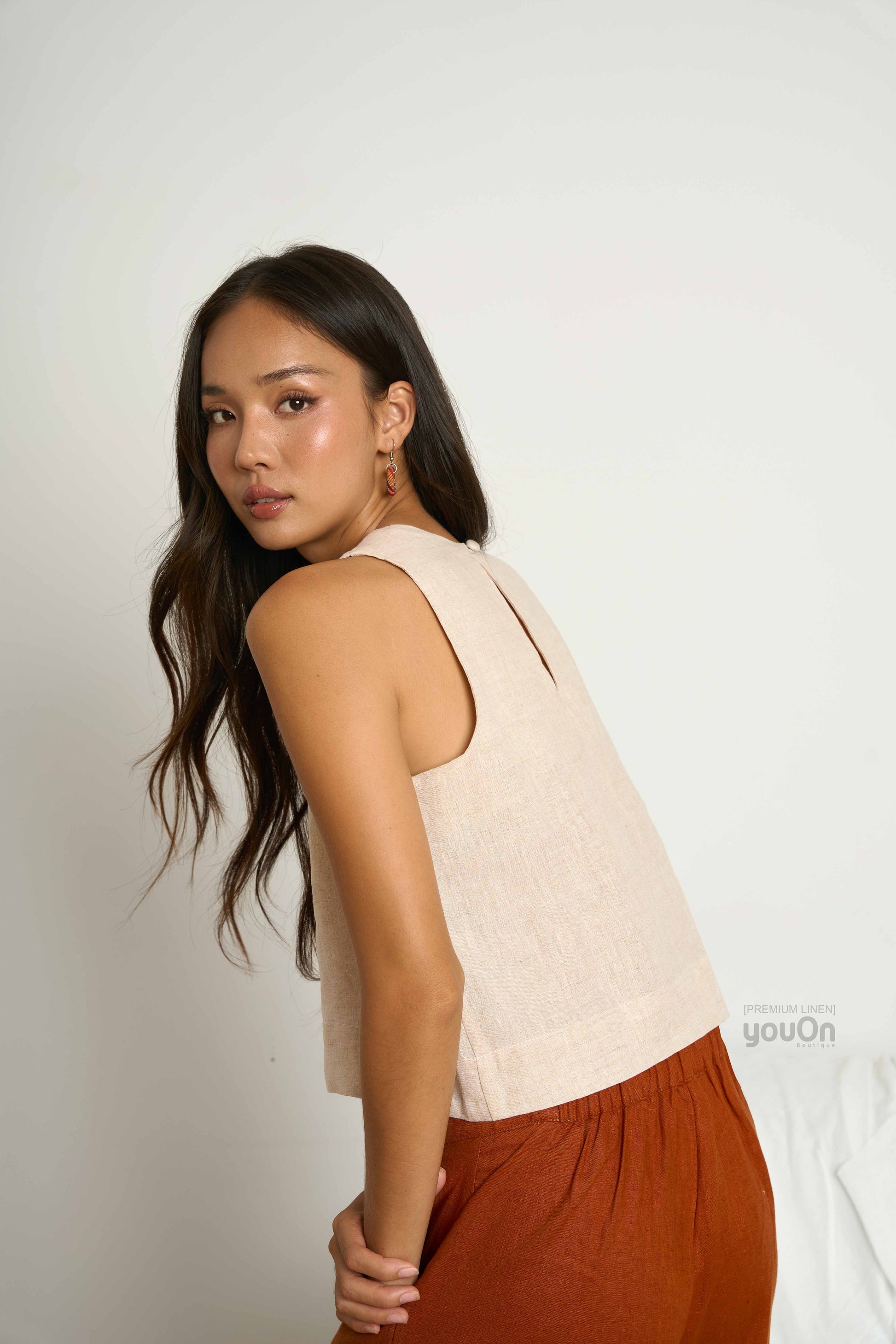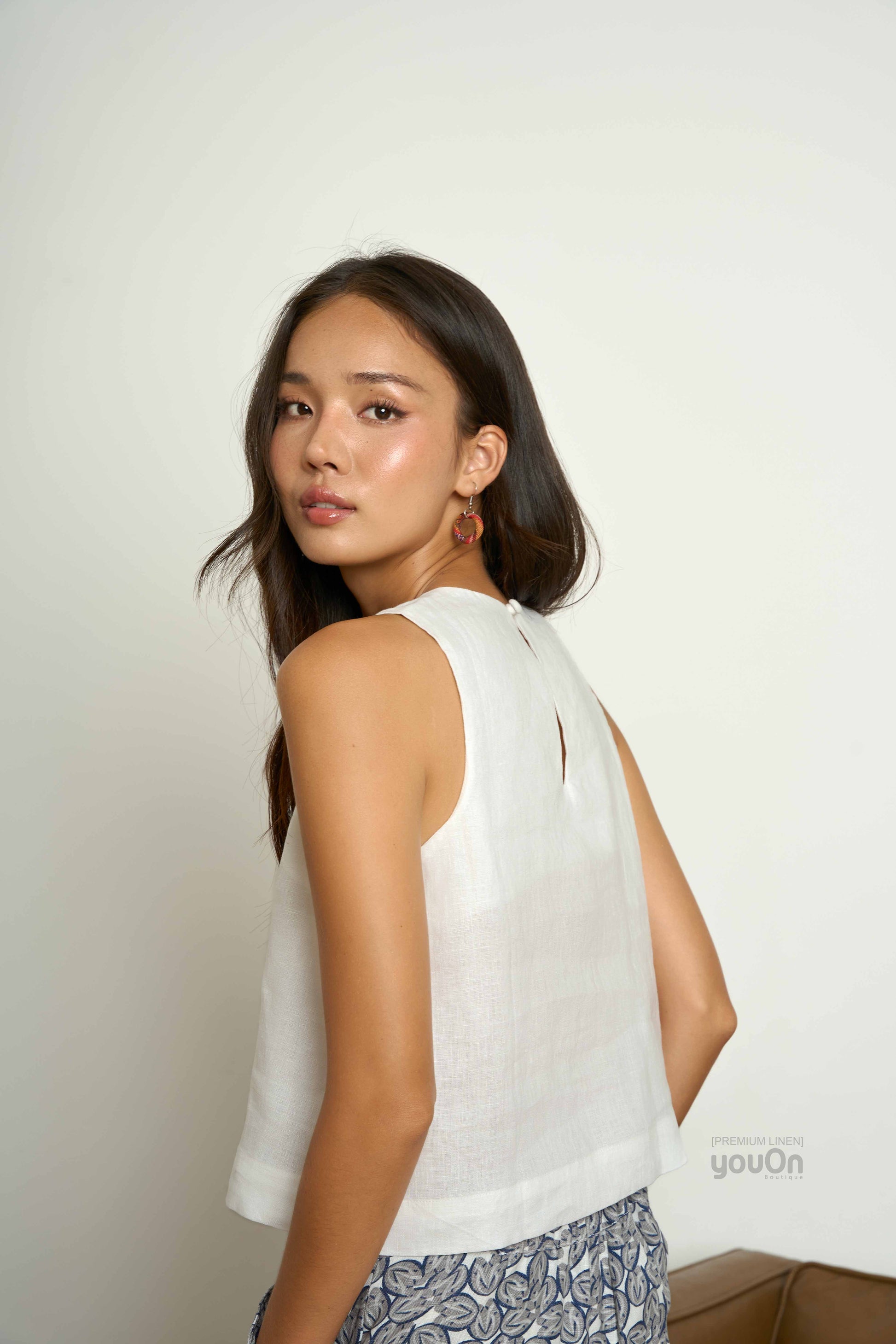 Áo sát nách dáng nhỏ, tà lệch, nút cài thân sau đem lại sự trẻ trung cho mọi lứa tuổi.