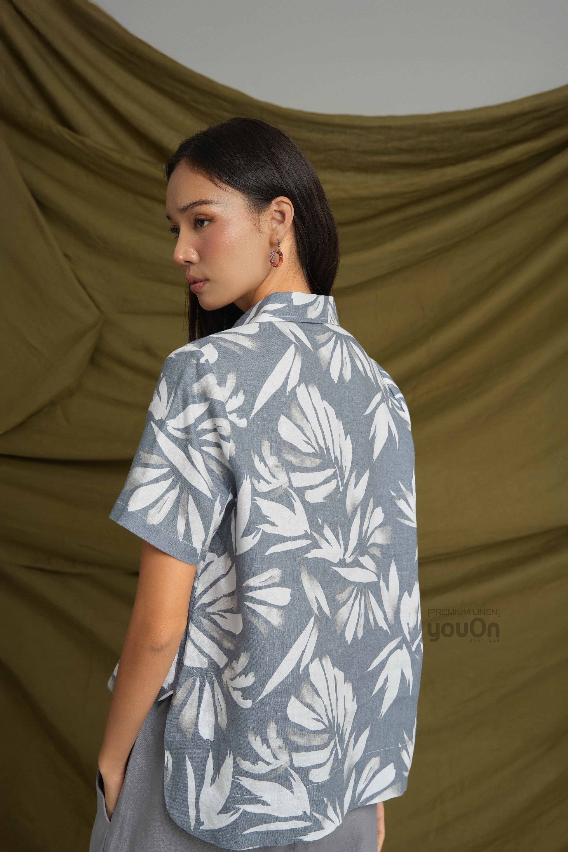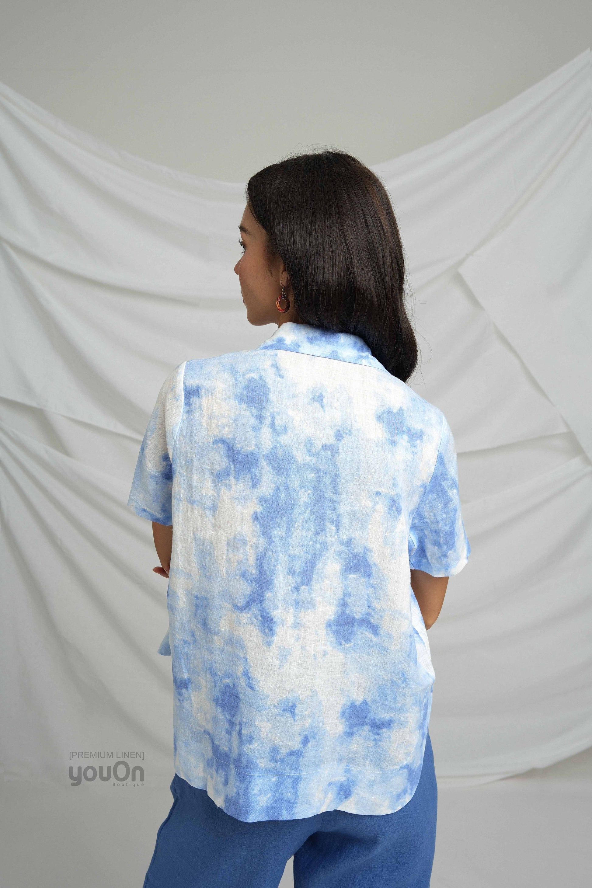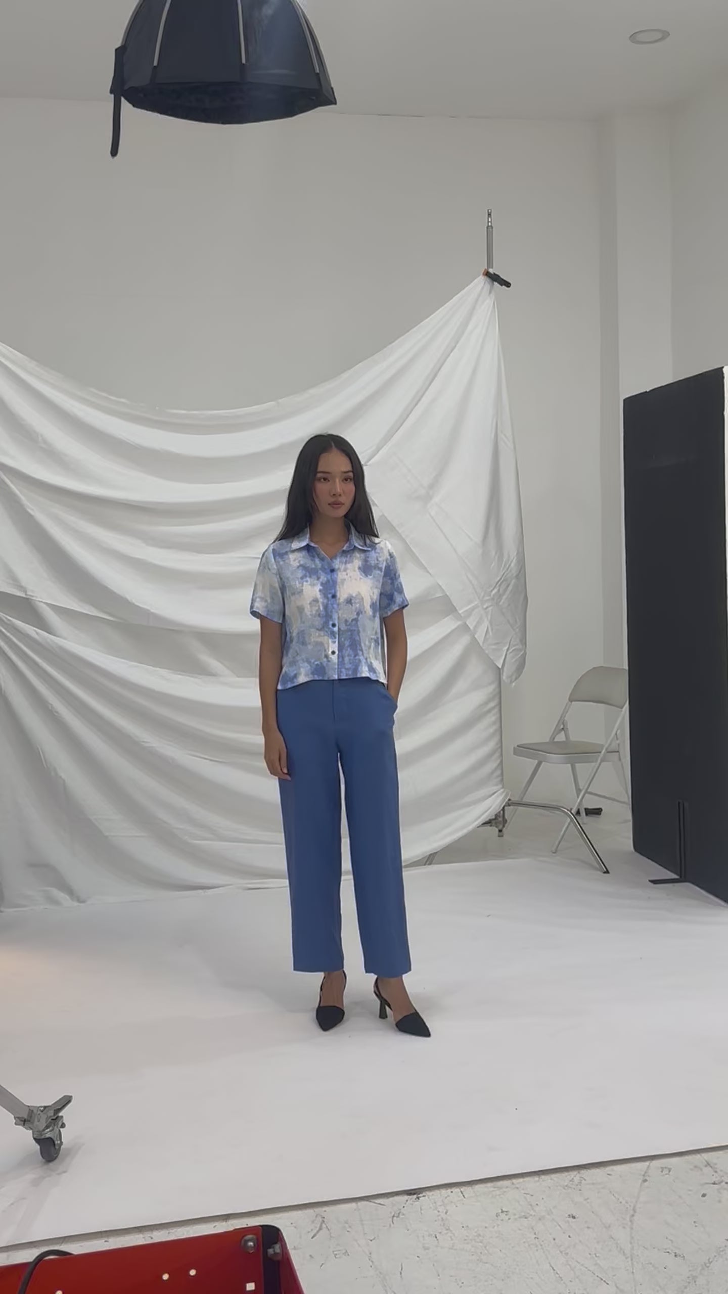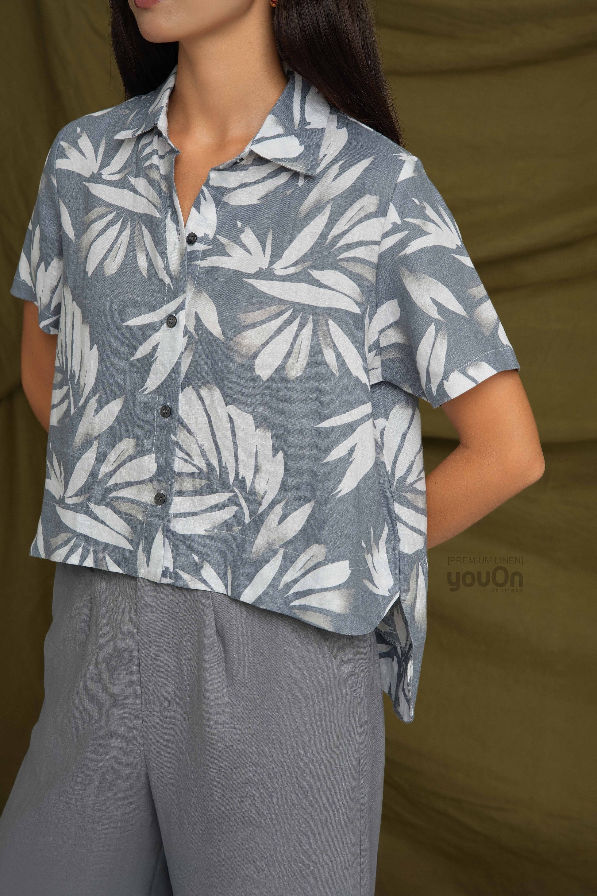 Dáng áo sơ mi có cúc, vạt bầu. Tà áo sau dài hơn tà áo trước.