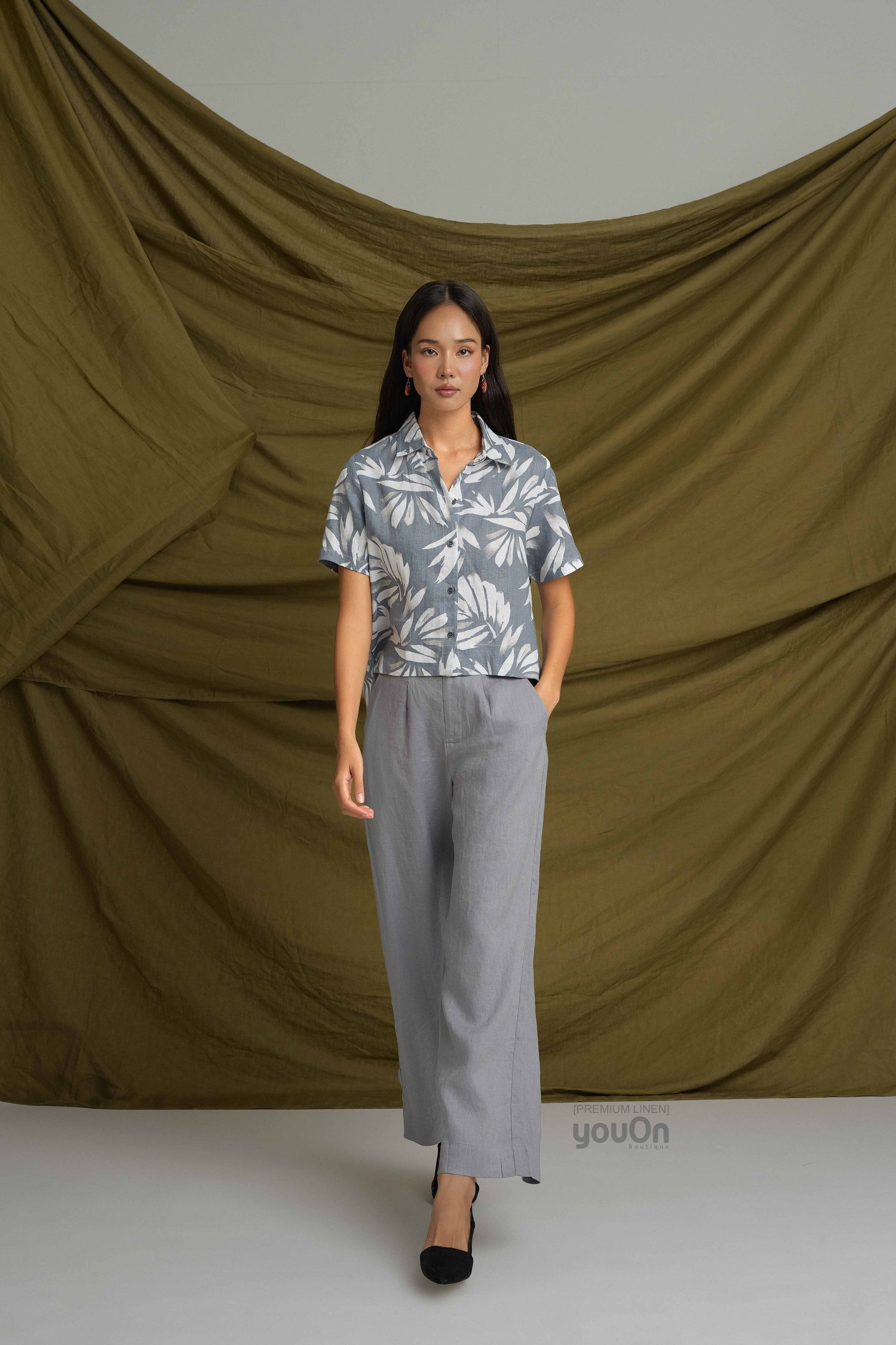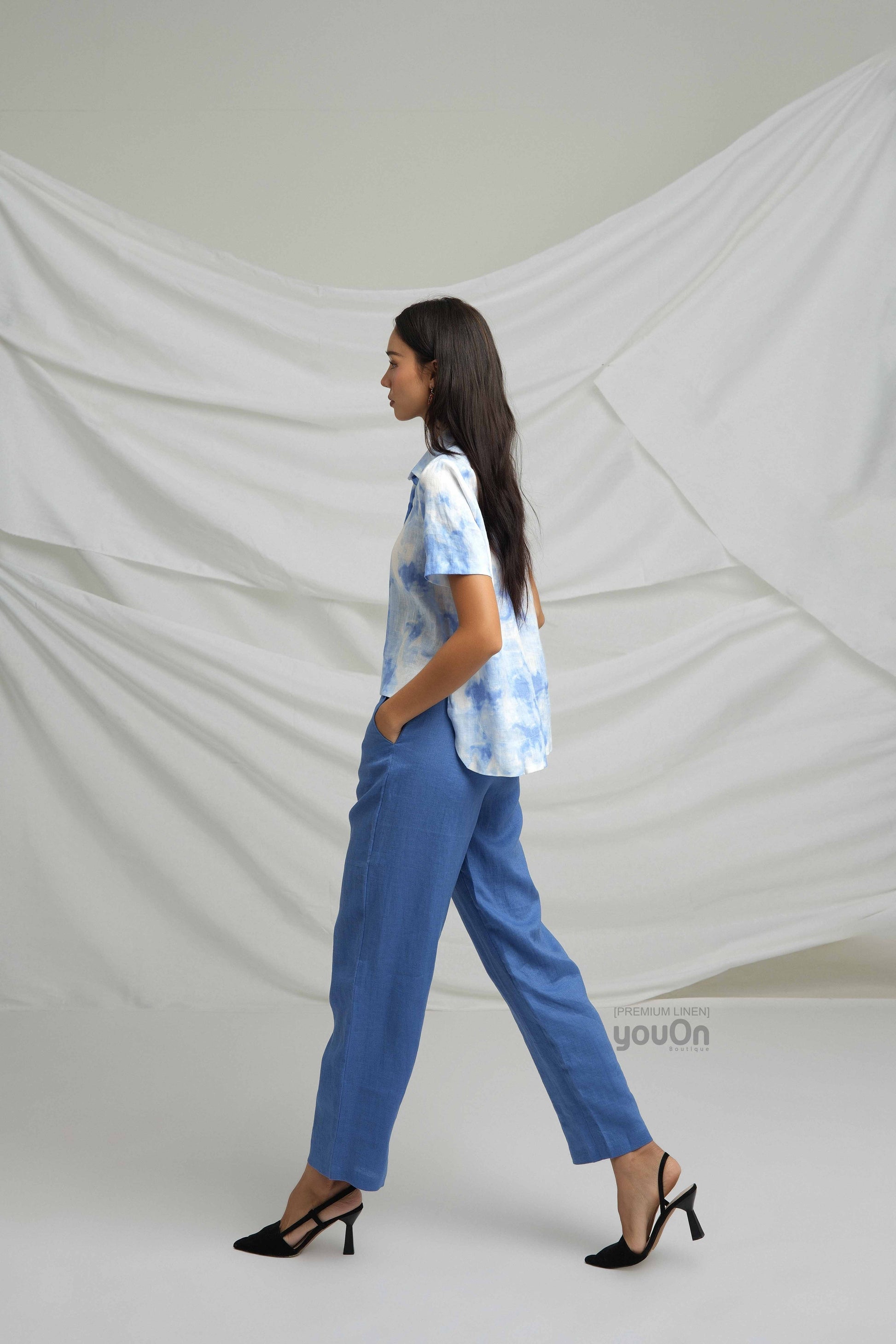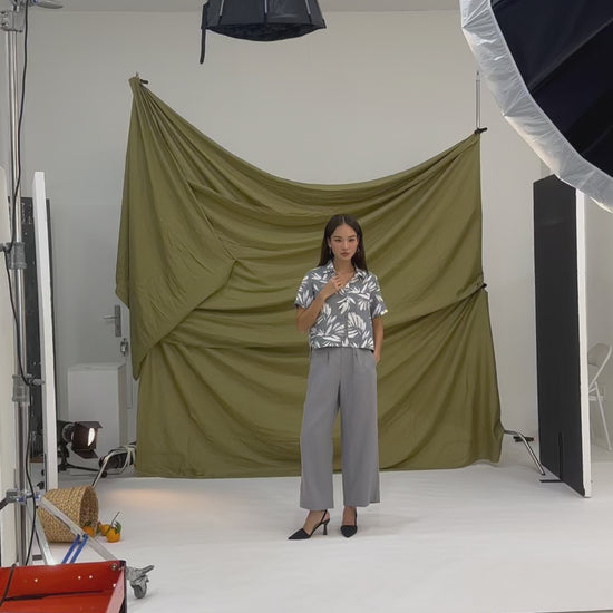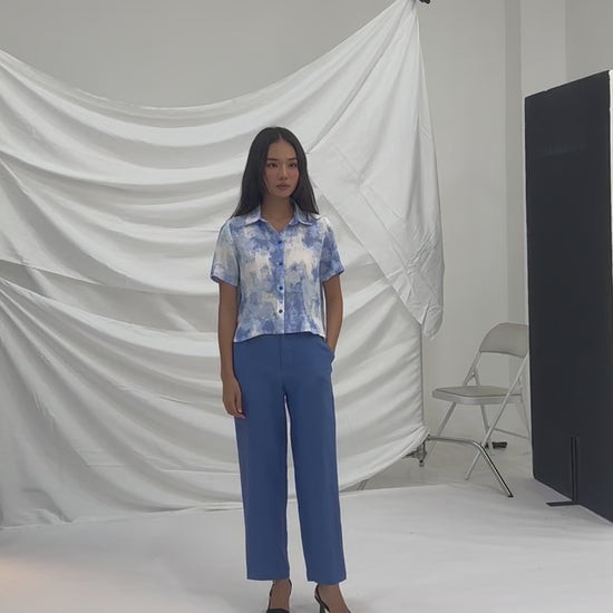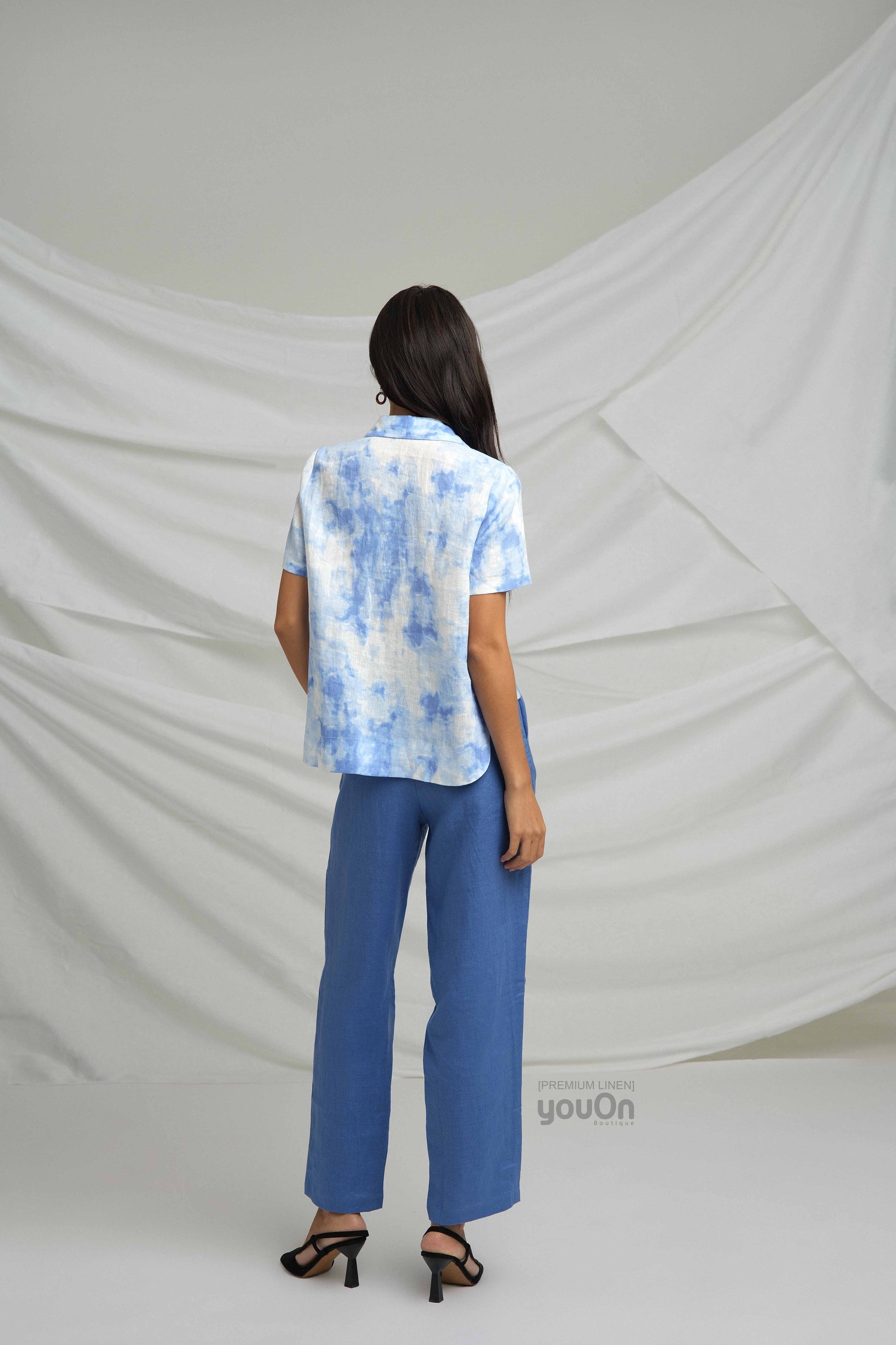 Dáng áo sơ mi có cúc, vạt bầu. Tà áo sau dài hơn tà áo trước.